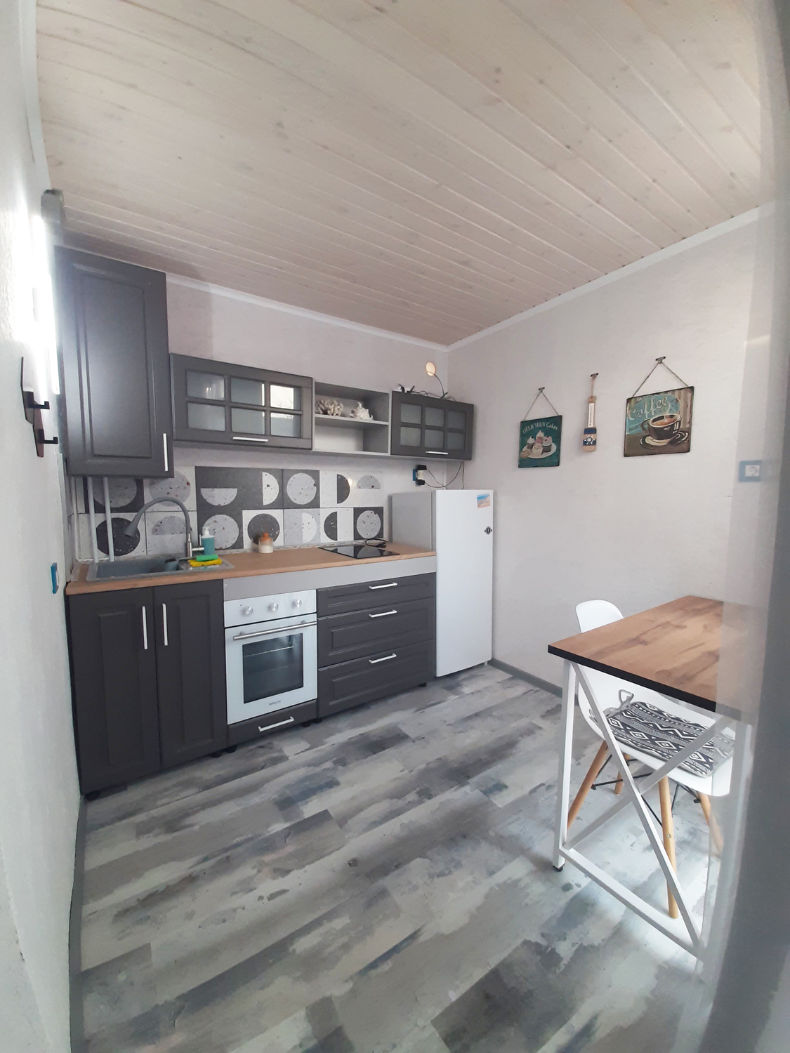 Отдыхали с дочкой в прошлом году. Местоположение отличное, утром 5 минут галечный пляж, после обеда 5 минут до песочного пляжа! Домики новые, всё чистенько. Милые, отзывчивые хозяева.