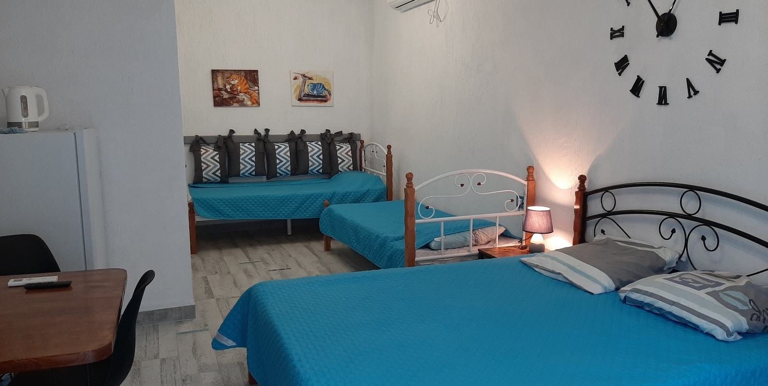 Номера с двумя односпальными и одной двуспальной кроватями, оборудованные всем необходимым для долгосрочного проживания
