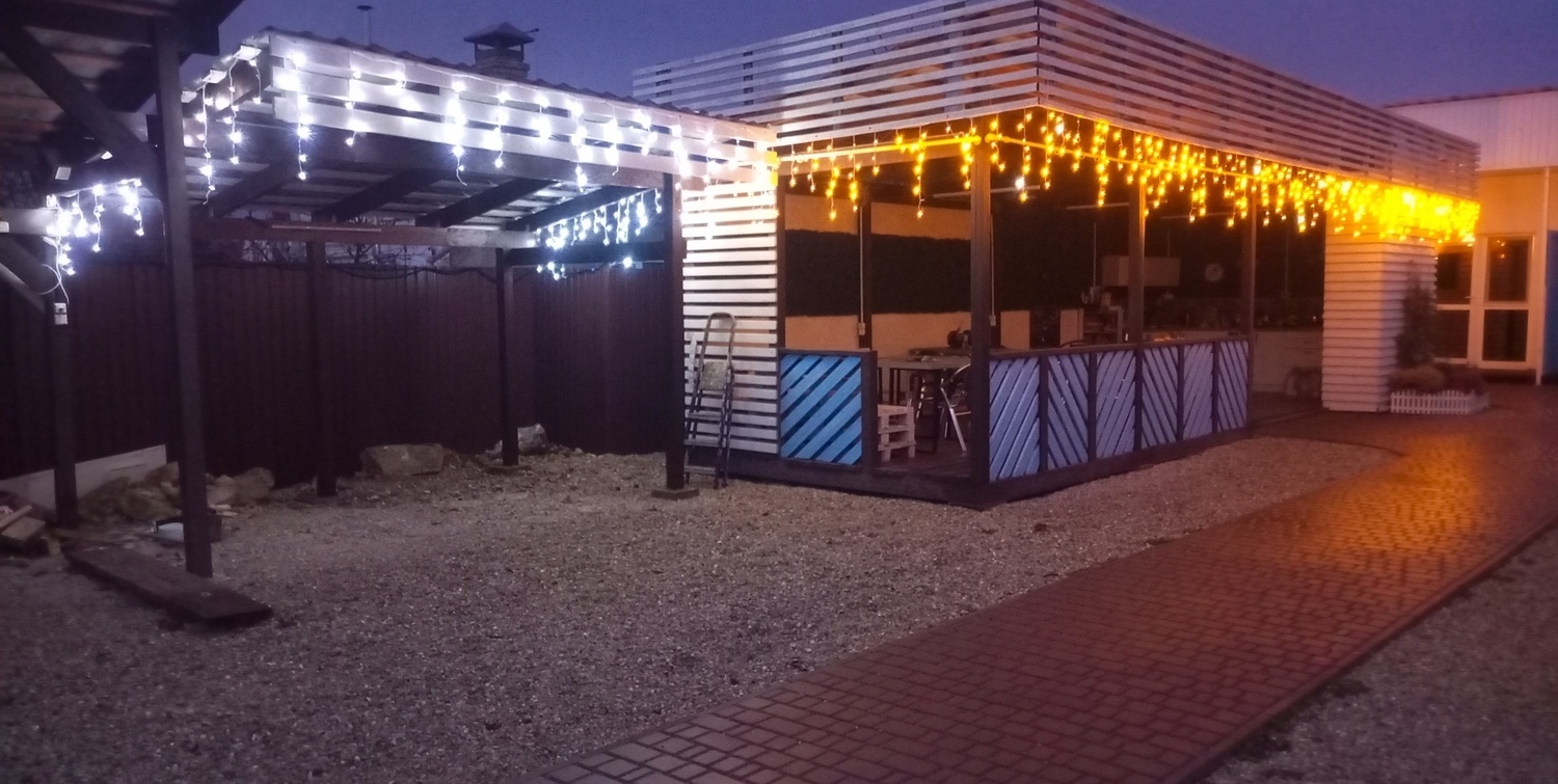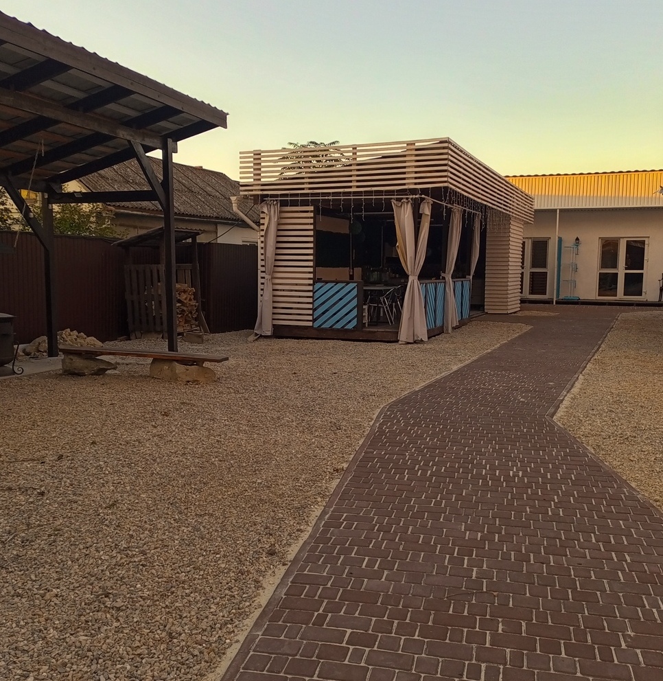 Отдыхали с дочкой в прошлом году. Местоположение отличное, утром 5 минут галечный пляж, после обеда 5 минут до песочного пляжа! Домики новые, всё чистенько. Милые, отзывчивые хозяева.