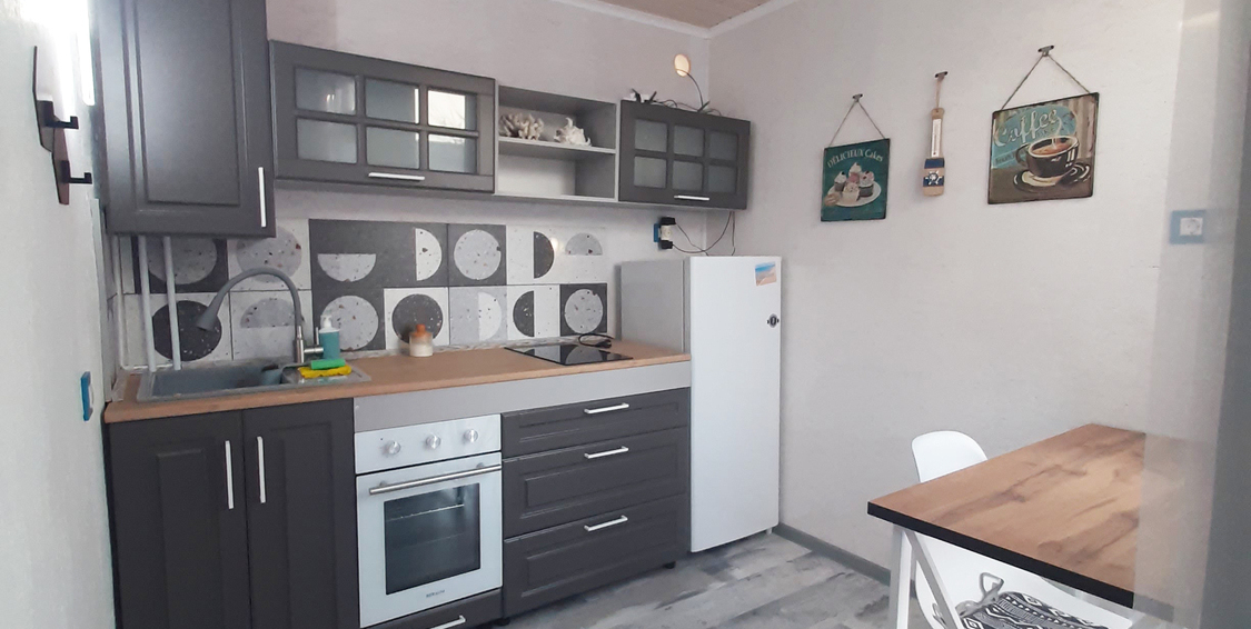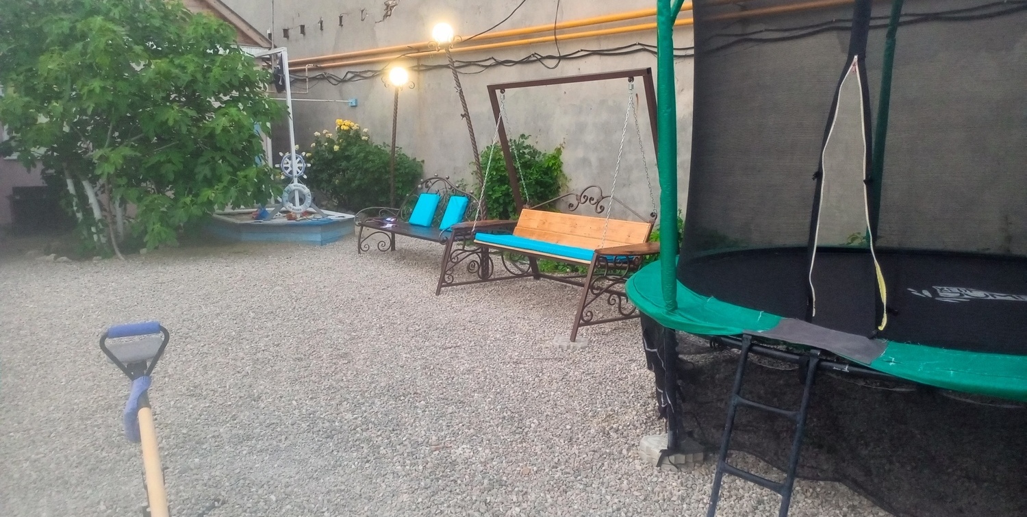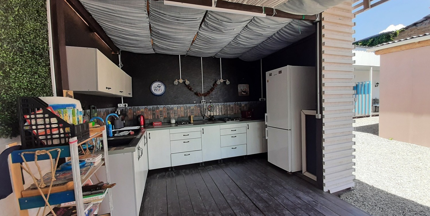 Для Вас сделан хороший ремонт. Номер на четверых человек, размер 25 м2. Отдельная летняя кухня со столиками и кухонной зоной, а также зона барбекю. Своя парковка! Есть песочница, батут и качели для ребятишек. До новой набережной и пляжа 300 метров по новой тратуарной дорожке.